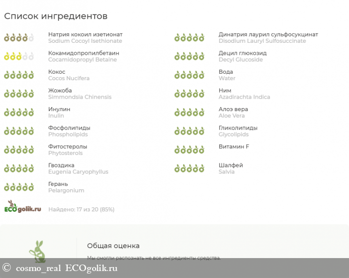 Кролик-Экоголик не распознал несколько компонентов, о них расскажу немного подробнее.