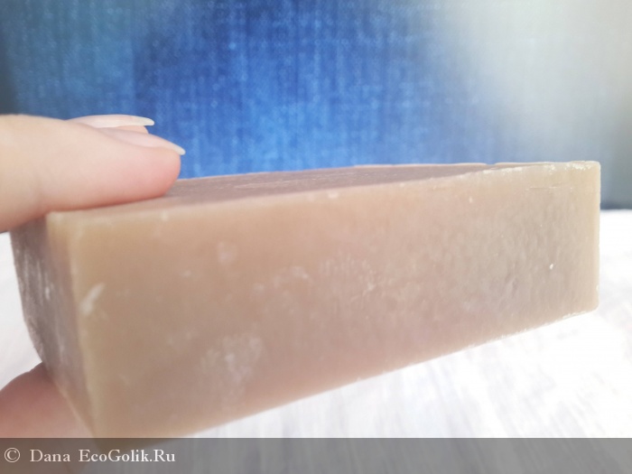 Мыло однородной массы без острых частиц и вкраплений. Молочного цвета.