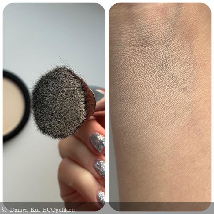 Пудра достаточно мягкая, но часто пылит. Если делать свотч, то продукция может ощущаться крупинками, но при нанесении этого не ощущается.