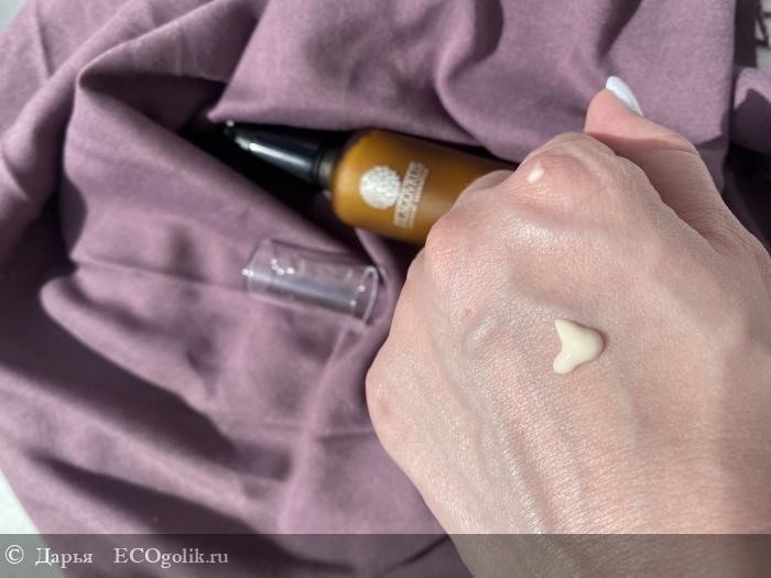 Консистенция крема густая,но при этом отлично распределяется и быстро впитывается не оставляя следов.