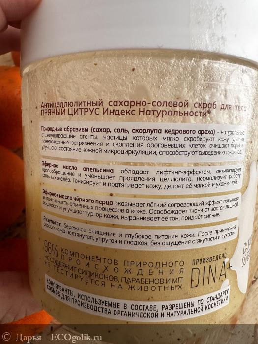 Привет всем заглянувшим. Праздники закончились, пора браться за дело))) Первый отзыв в 2024 году будет посвящен новинке от компании индекс натруальности АНТИЦЕЛЛЮЛИТНЫЙ СКРАБ ДЛЯ ТЕЛА ПРЯНЫЙ ЦИТРУС 🍊
