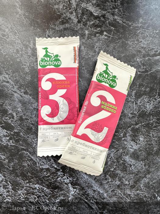 Первым решила попробовать малина-яблоко. Батончики Bionova можно употреблять во время поста и отлично подойдут веганам.
