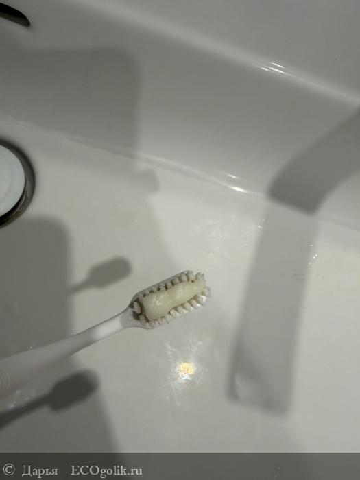 Я заметила, что паста помогает успокоить десны, уменьшить их чувствительность и даже немного снять воспаление после чистки