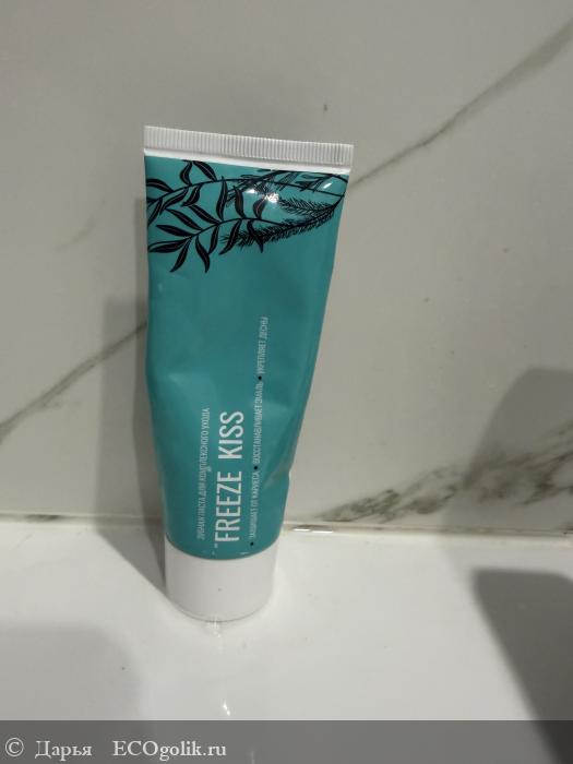Упаковка пасты Freeze Kiss выполнена в лаконичном стиле: тюбик и коробка — минимализм без лишних элементов. Визуально это цепляет больше, чем обилие красок — строгий шрифт, акценты на главных ингредиентах и для чего они нужны. Удобный тюбик, дозировка комфортная, крышка плотно закрывается.