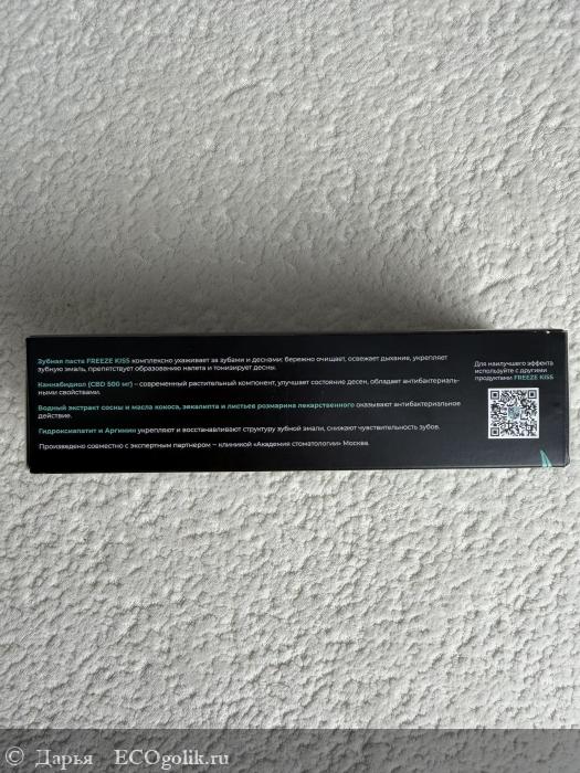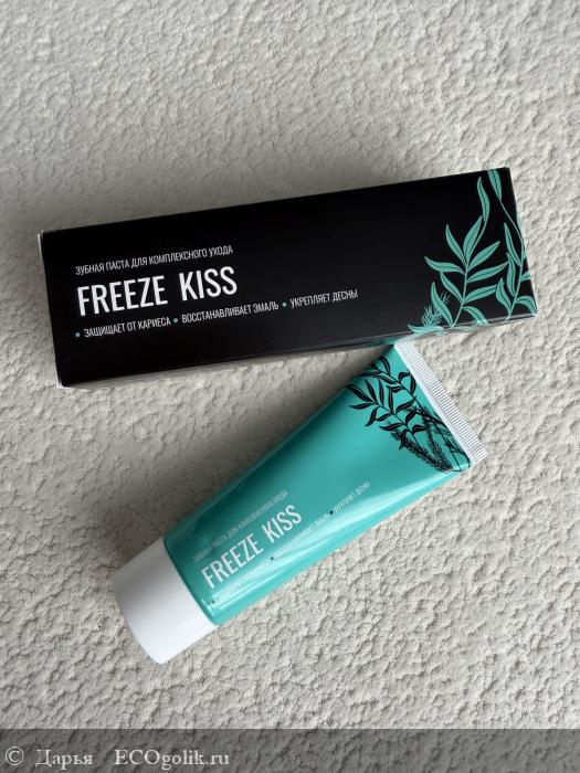 Мне паста понравилась, отлично справляется со своим прямым назначением. Даёт яркое, долгое ощущение свежести — «ледяной» оттенок от ментола и эвкалипта соответствует названию Freeze Kiss. Эффективно очищает. Текстура гладкая, после чистки остаётся ощущение чистоты.