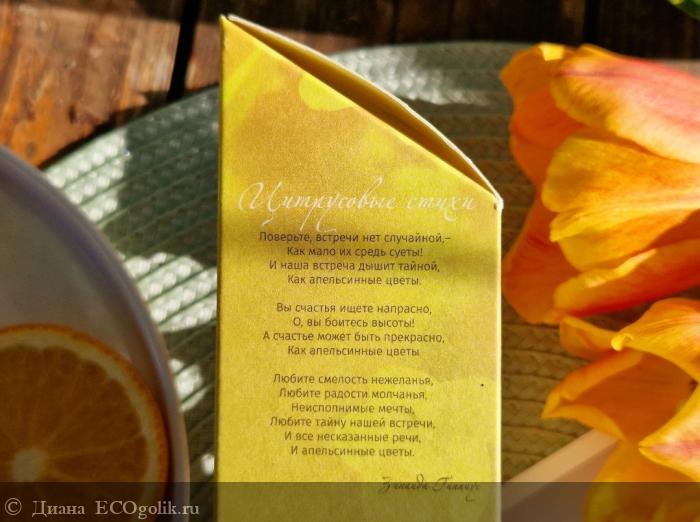 Цитрусовые стихи на упаковке - это так не обычно и в тему. "Апельсинные цветы" - потрясающе, мне понравилось, позитивно и настроение сразу улучшается.