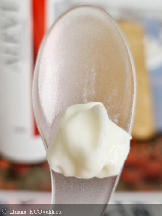 Консистенция кремообразная, легкая и чуть маслянистая что ли, вон как с ложки поехала в вертикальном положении