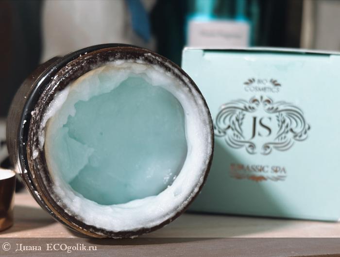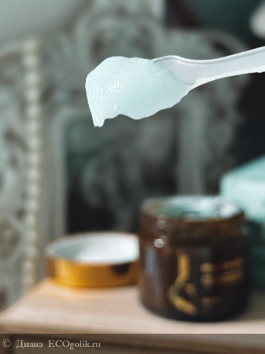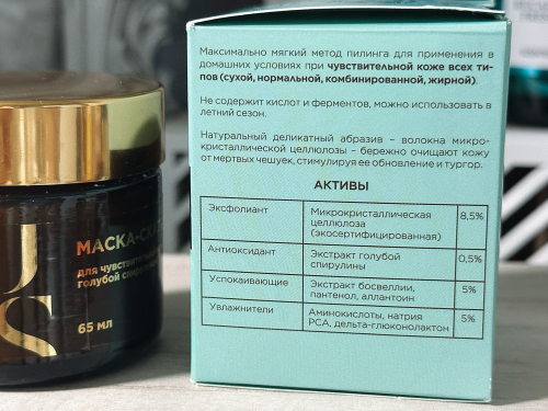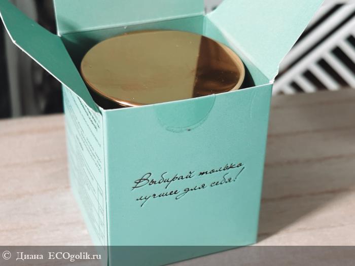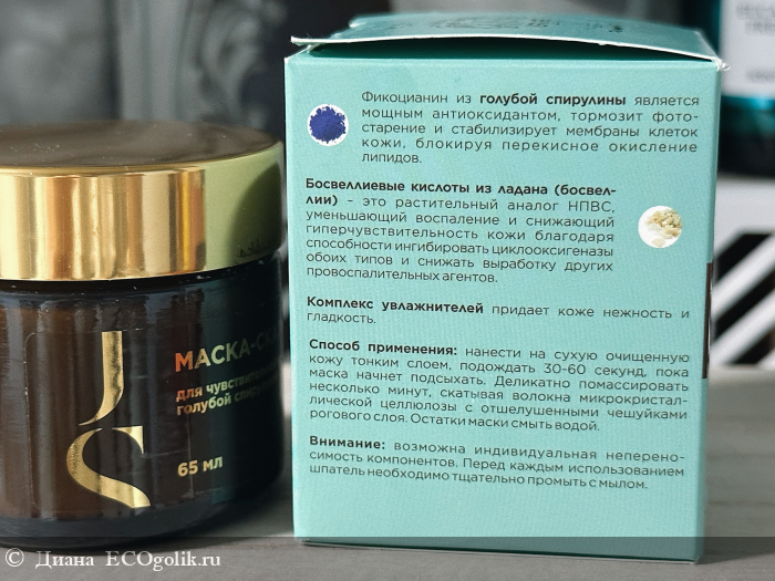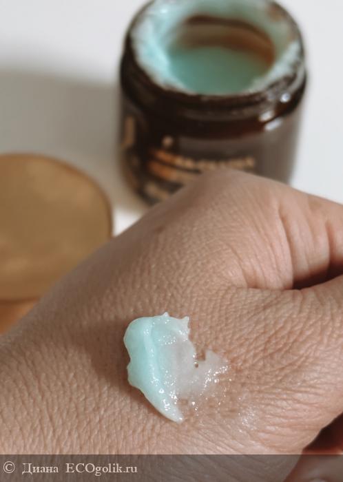 Еще мне понравилась упаковка, баночка с золотой крышкой, внутри бирюзовой коробочки была лопатка для нанесения средства, молодец производитель, все предусмотрел.