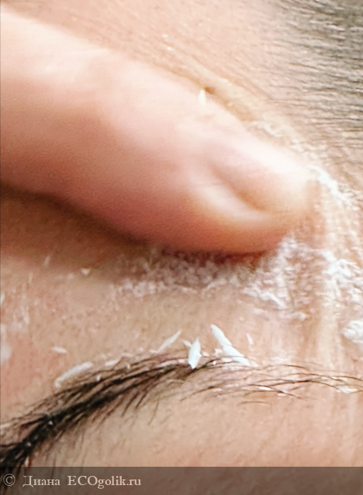В инструкции не было написано где это делать, я сообразила, что будут падать скатанные волокна микрокристаллической целлюлозы с отшелушенными чешуйками рогового слоя.