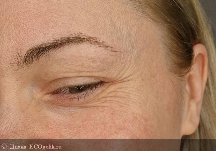 Выше фото до применения сыворотки, видны морщины, гусиные лапки.
