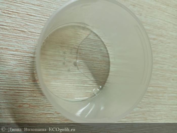 Гелеобразная, прозрачная, водянистая консистенция, легко распределяется по волосам и быстро смывается.