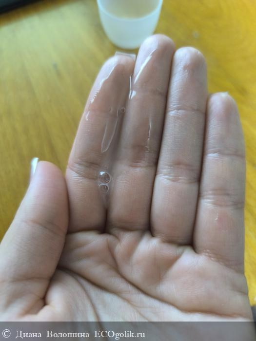Достаточно жидкая,гелеобразная но это не мешает, а даже наоборот, лучше наносится.