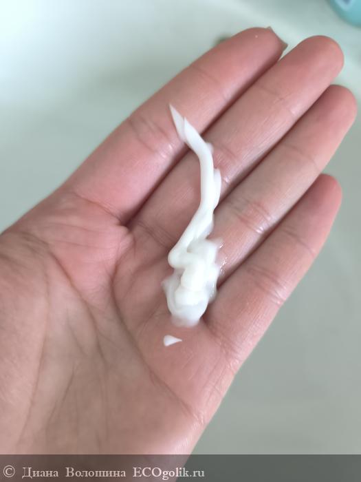 Имеет плотную, густую кремовую текстуру, белого цвета, которая легко распределяется, не утяжеляя волосы.