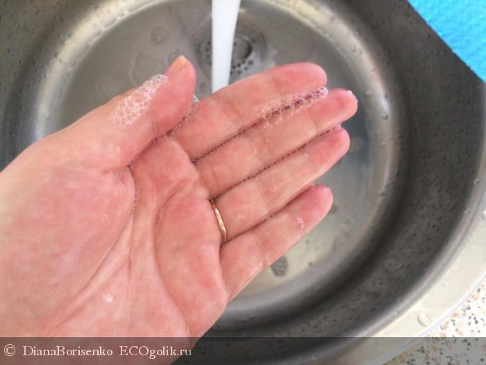 - Пенится мыло хорошо, т.е. обычно, может, чуть меньше, чем его не "эко" друзья из супермаркета, но для "эко" продукта - пенится хорошо.