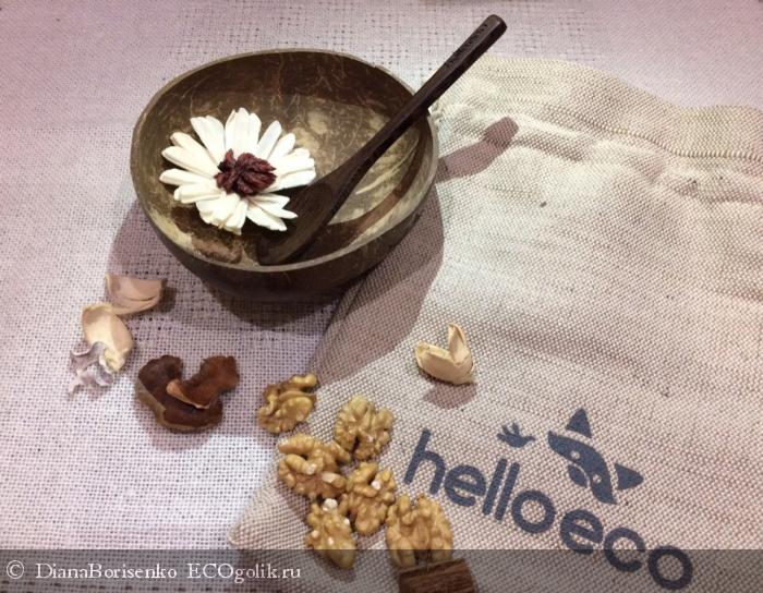 У меня теперь есть целый набор, а именно: кокосовая пиала от "helloeco", на которую я так давно уже смотрю, красивая деревянная ложечка и довольно большой подарочный мешочек мешочек из парусины.