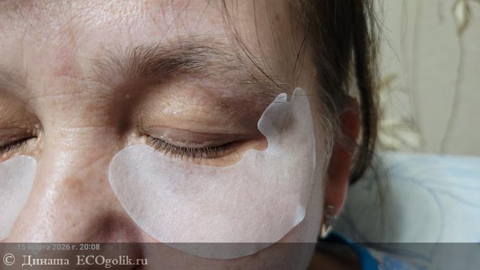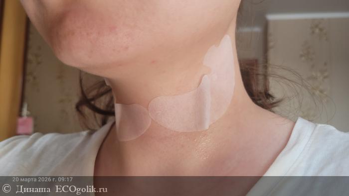 На фото можно увидеть напитанность патчей, первые несколько секунд средство даже немного стекает по шее.