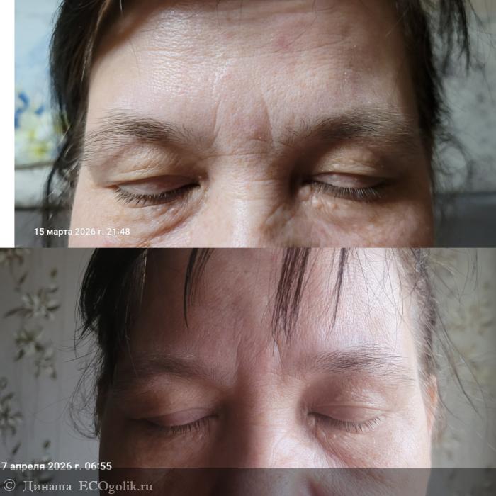 Наносили, как и положено по инструкции, 3 раза в неделю, для достижения максимального эффекта. Также для чистоты эксперимента не пользовались другими средствами, которые используются для кожи вокруг глаз.
