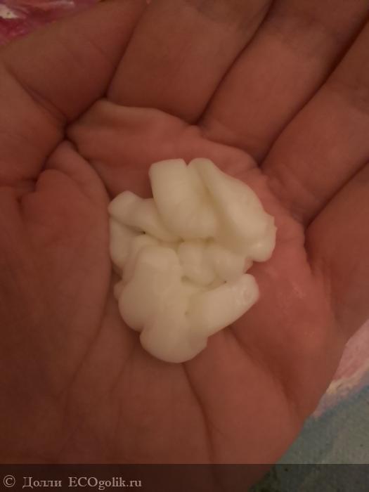 И вот, как выглядит сам бальзам. Консистенция у него довольно густая. При этом он довольно легко распределяется по волосам.