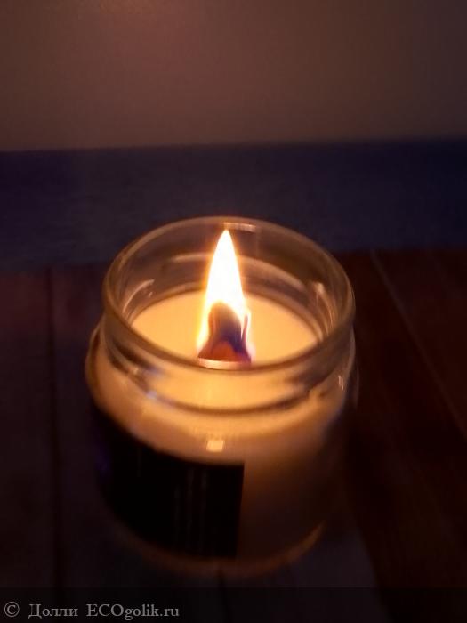 А вот здесь она разгорелась уже немного сильнее. Когда смотришь на пламя свечи, это всегда помогает успокоиться и расслабиться. Эта свеча хоть и не массажная, но я думаю, что её вполне можно использовать для массажа тоже.