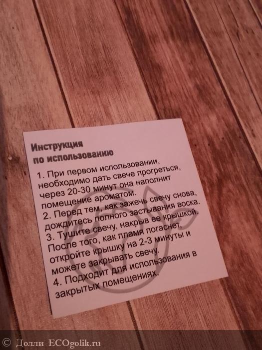 В баночке находится 100 мл воска с эфирными маслами. В коробочке также есть небольшая инструкция, как эту свечу надо зажигать и правильно гасить.