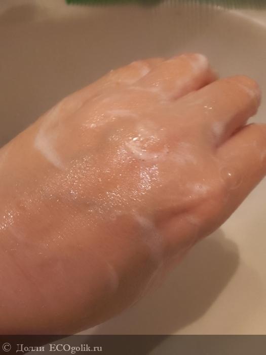 И сейчас мы с вами посмотрим, как он пенится. А делает он это просто отлично, поэтому я и говорю, что можно брать его поменьше. Мне это очень нравится, я не люблю средства, которые плохо пенятся.