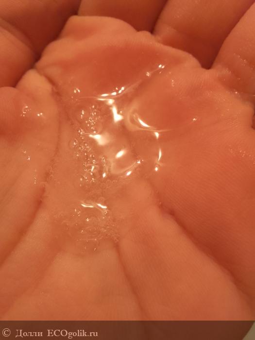 Флакончик оснащён удобным дозатором, с помощью которого можно взять необходимое количество этого геля. Достаточно нажать на него один-два раза и вы получите необходимое количество. Он хорошо пенится, поэтому много его и не надо.