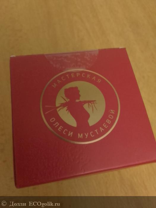 На крышке коробочки мы видим логотип марки "Мастерская Олеси Мустаевой". Я недавно вам рассказывала про их гель для душа "Она иная" с жасмином и маслом нероли. Этот гель для душа мне очень нравится, мыться им одно удовольствие.