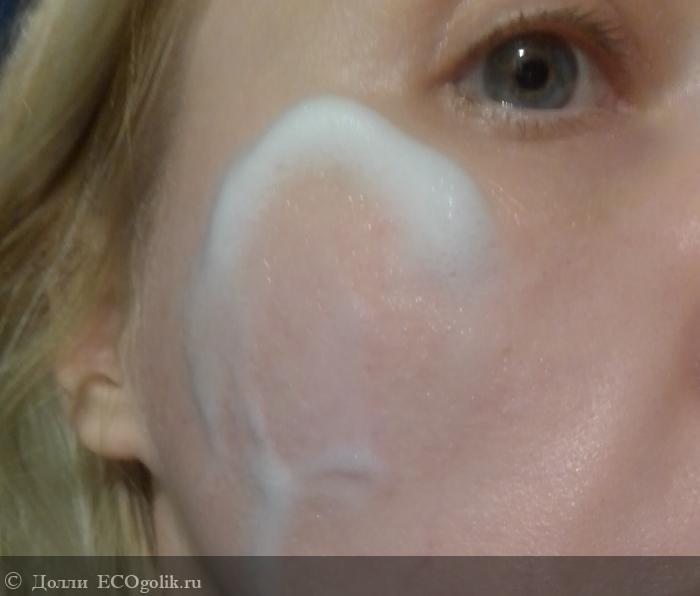 Использовать его очень просто: достаточно пару раз нажать на дозатор и получим необходимое количество мусса для умывания. Потом наносим на лицо и распределяем легкими массирующими движениями.