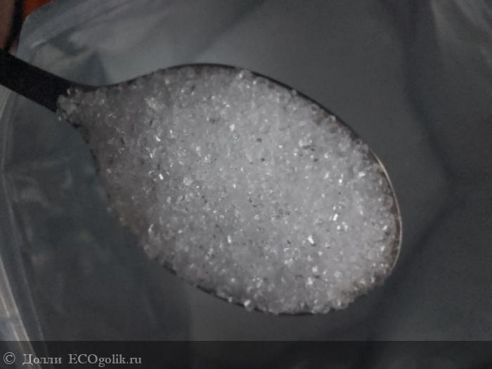 И в ложечке посмотрим поближе. Вот такие тут небольшие крупинки. Для скраба в самый раз подойдет.