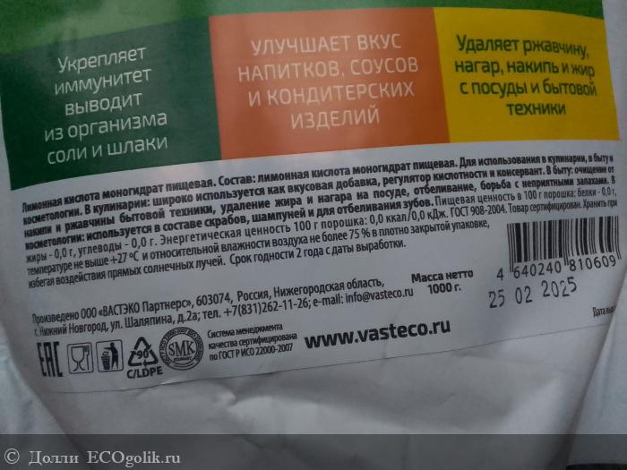 В общем, лимонная кислота "Вастэко" - это отличная вещь. Мне нравится. Всем спасибо.
