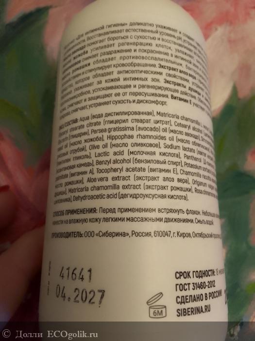 Молочко для интимной гигиены Siberina стало для меня настоящей находкой. Моя оценка для него будет самая высокая и надеюсь вам тоже понравится. Всем желаю приятных покупок и благодарю за внимание.