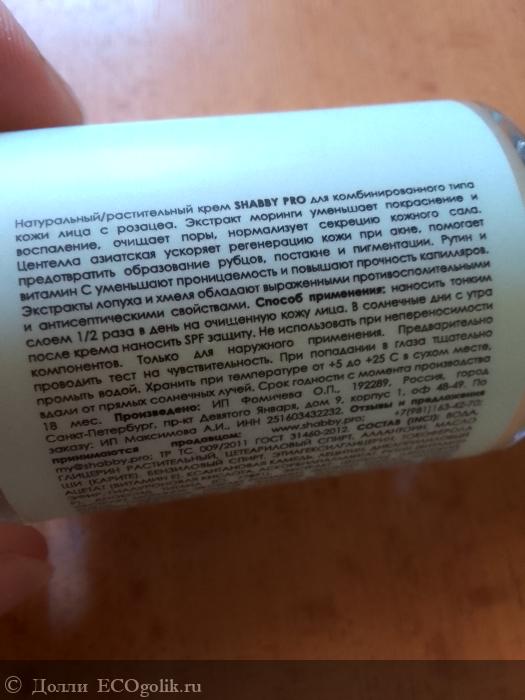 Косметика "Shabby Pro" производится в Санкт-Петербурге. Внутри коробочке находится флакончик, в котором 30 мл крема. Расход у этого крема довольно небольшой, так что хватит должно надолго. А сам флакончик довольно компактный и хватить его должно надолго.