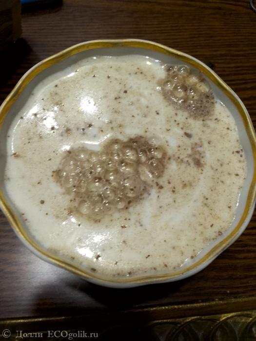 Напиток содержит 20 процентов белка, а также в нем содержится полезный инулин. Отличный вариант для завтрака.