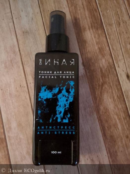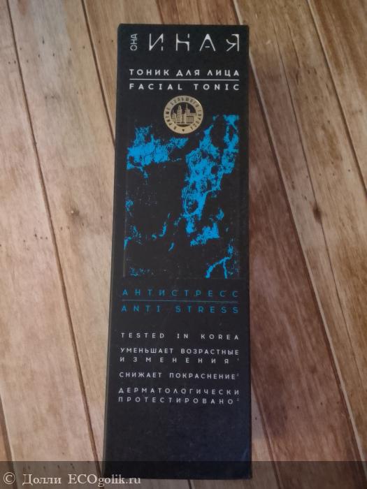 Всем привет, мои дорогие читатели. Сегодня я хочу вам рассказать про тоник для лица от производителя "Мастерская Олеси Мустаевой" от марки "Она иная". Это тоник антистресс, который борется с возрастными изменениями кожи и отлично тонизирует и увлажняет её. Находится он вот в такой красивой коробочке, как всегда, в сочетании чёрного и голубого цвета. Такая упаковка очень привлекает внимание.