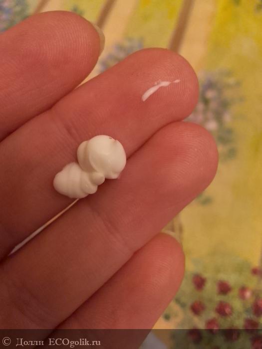 Сейчас мы с вами посмотрим, как выглядит крем. Он белого цвета, консистенция довольно плотная.
