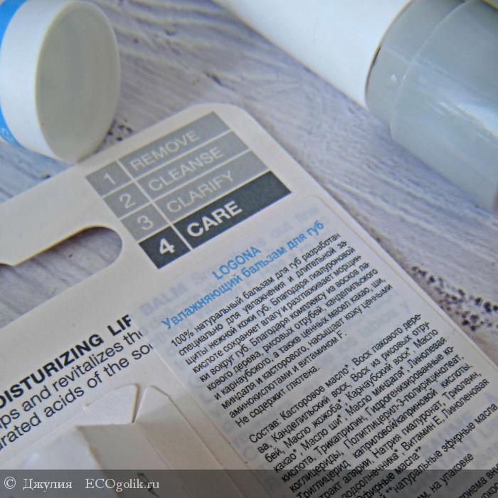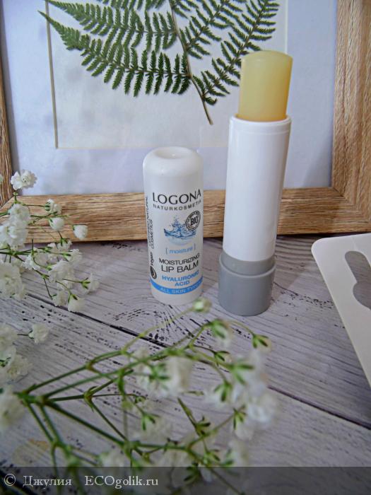 Я же поделюсь своим мнением на самый ходовой уходовый продукт за губами это бальзам! Мой вариант от немецкой марки Logona с гиалуроновой кислотой. Значится как увлажняющий.
