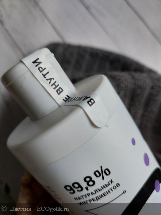 Банка приличная целых 400 мл! Сделана из мягкого пластика, чтобы при случае можно было выдавить ее. В основе у нее мягкие ПАВ и успокаивающие масла лаванды, герани и пальмарозы.