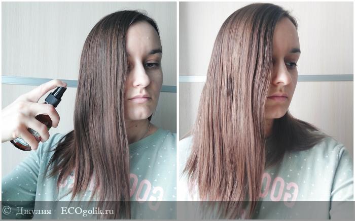 Я наносила в основном на влажные волосы, потом было легче их расчесать. Волосы меньше путались и становились гладкими и послушными. Порой я рисковала и наносила спрей на сухие волосы, чтобы усмирить их