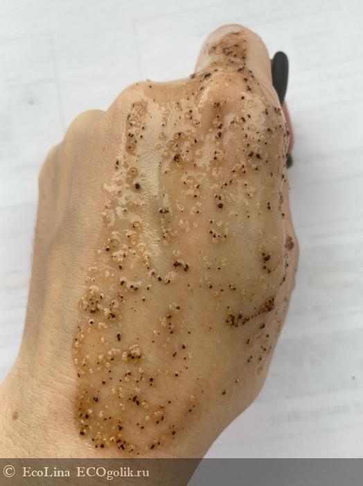 Консистенция у скраба очень густая, но при этом он не рассыпчатый.