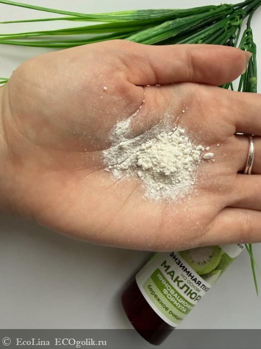 Первое на что обратила внимание - запах. Он нейтральный, не сильно выражен и что самое важное - приятный. Не вызывает неприятных ощущений из-за которых сложно использовать энзимную пудру.