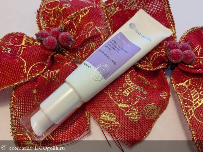 Долгое время я избегала кремов вокруг глаз, пользуюсь «заодно» какой-то сывороткой для лица и под глаза одновременно (плюс, опять же, патчи). Но уже к ближе к сорока пяти понимаю, что для глаз нужен отдельный полноценный уход. Мой выбор пал, конечно, не просто на «крем с ромашкой», а крем ACTIVE EYE с активным пептидным комплексом для век MATSESTA. Объем 30 мл.