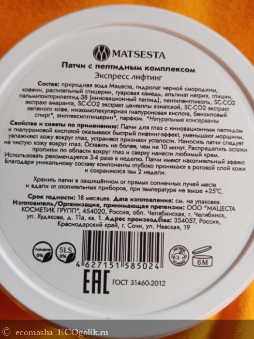 Натуральные патчи для глаз - это большая редкость. Поэтому тем более радостно найти их. Я для себя обнаружила отличный вариант органических патчей для глаз - это патчи экспресс-лифтинг с пептидным комплексом Matsesta.