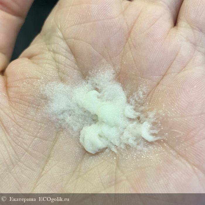 По текстуре средство все же больше похоже на сыворотку, оно плотное, густое и слегка маслянистое. Средство белого цвета, однородное, без каких либо вкраплений. Отдушка у него насыщенная, травяная, не думаю, что всем бы такой понравился, но я к ароматам не слишком придираюсь, самое главное - на волосах он практически не ощутим.