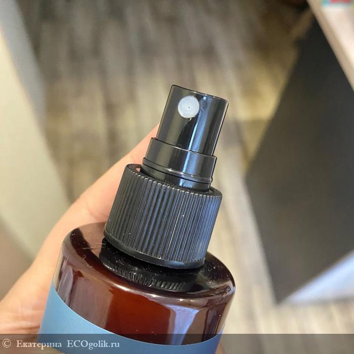Дозатор представлен в виде спрея. Первые 3-4 нажатия были холостыми. Все же, как по мне, для такого рода средств лучше бы не делали распылитель, а обычный помповый дозатор. Наносить на волосы с помощью распылителя не слишком удобно.