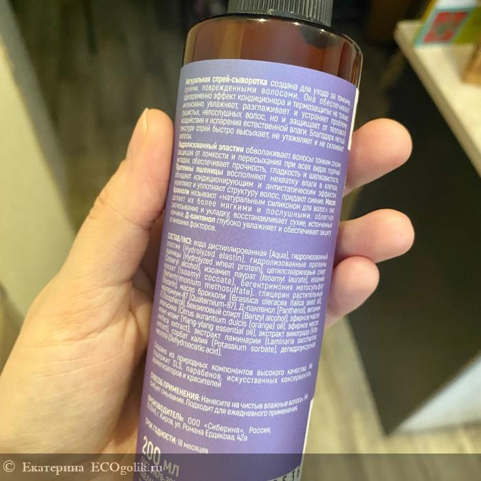 Спрей-сыворотку для тонких и сухих волос "Восстановление, гладкость и защита" с эластином от Siberina я определенно могу порекомендовать к покупке, он отлично показал себя на моих волосах.