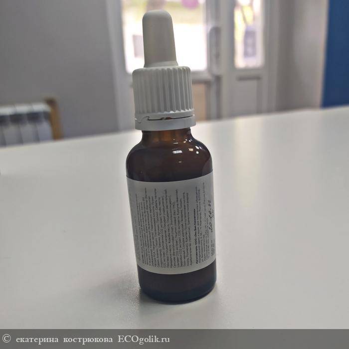 Флюид помещен в стеклянную темную баночку с белой наклейкой. Оформление минималистичное, приятное.