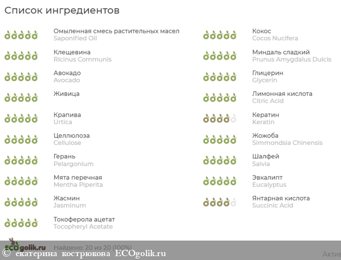 Все ингредиенты имеют оценку 4 или 5, состав абсолютно натуральный и безопасный, в нем нет красителей и консервантов.