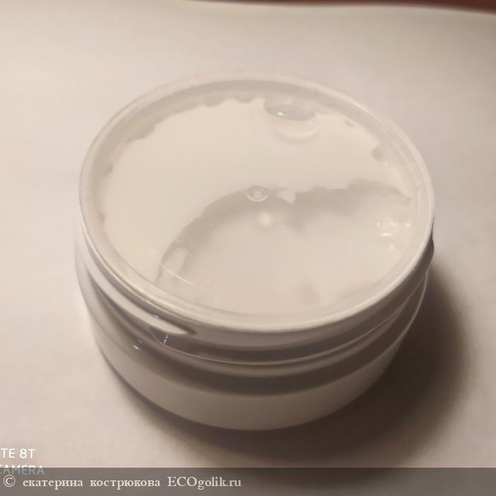 Крем находится в сине-белой круглой пластмассовой баночке с закручивающейся крышкой. Дизайн приятно радует глаз.