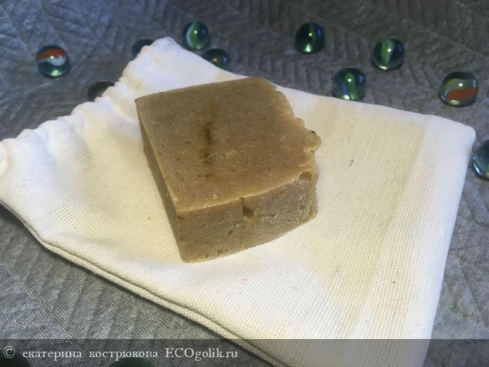 Меня очень порадовало оформление упаковки данного мыла: оно упаковано в тканевый мешочек с веревочкой.