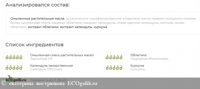 Экоголик распознал почему-то не все ингредиенты, но по их названиям и так понятно, что они точно натуральные. Состав безопасный.